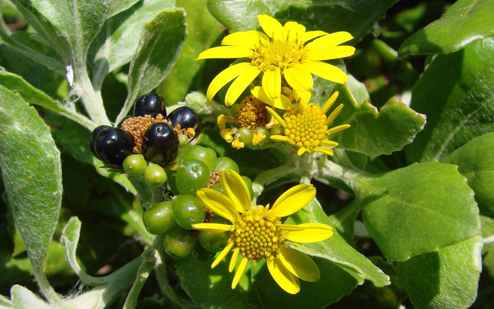 Osteospermum moniliferum. The pretty flowers are attractive to insects, especially butterflies, but when the fruit gets ripe it becomes the turn of many garden birds!