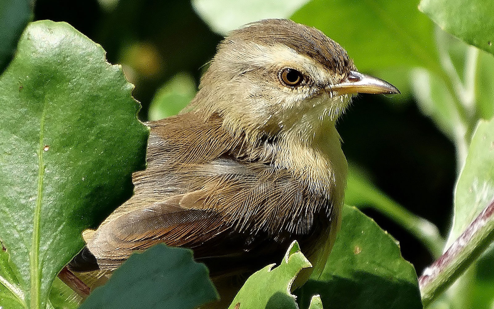 Because Osteospermum moniliferum is a host-plant to so many insects, birds like the Tawny-flanked Prinia continuously examine the somewhat succulent foliage for tasty bird meals.