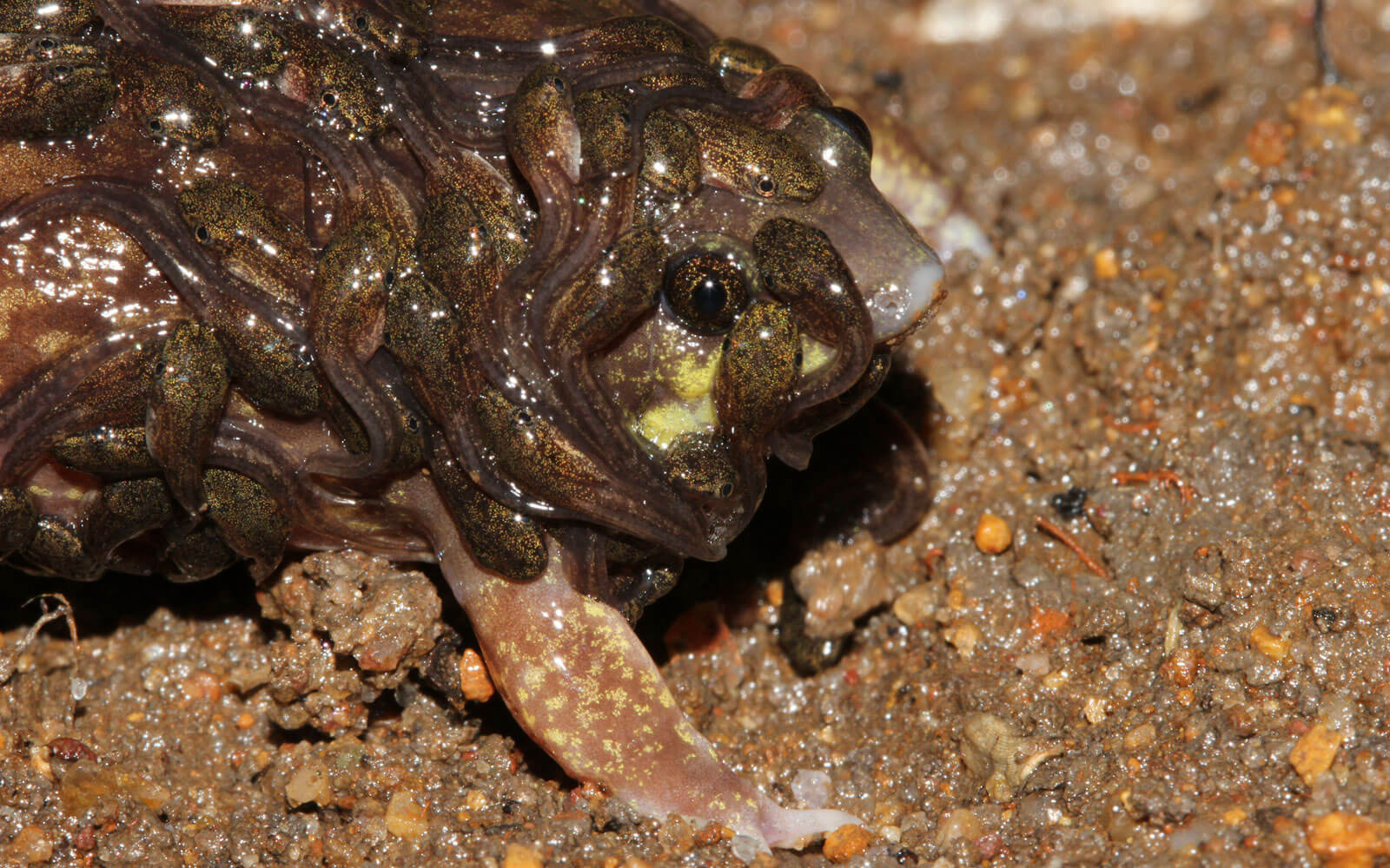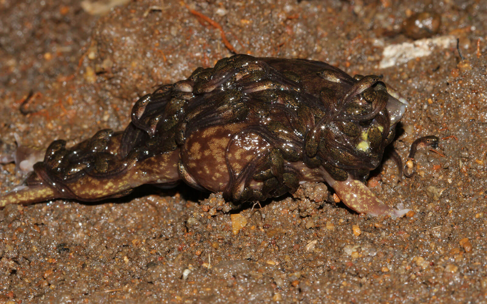 Female Shovel-nosed Frog (Hemisus guttatus) carrying tadpoles.