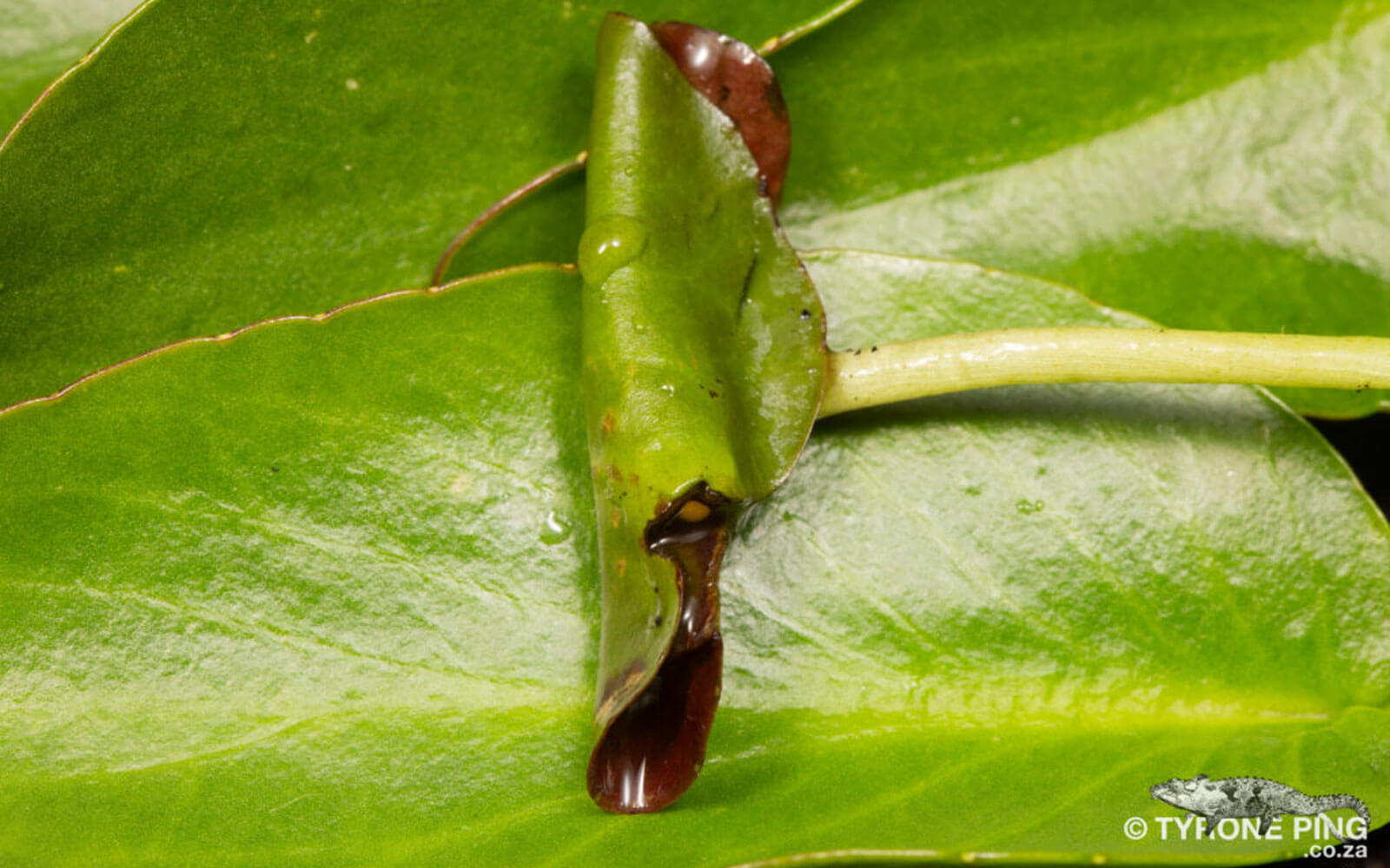 In the last edition of Leopard’s Echo we learnt about parental care in our local Kloof Frog, Natalobatrachus bonebergi, in which the female mother frog guards egg clumps, keeps them moist and stimulates development by massaging the egg clump with her legs. It may be that this behaviour not only helps spread moisture but also provide antifungal and antibacterial properties to the 50 – 100 tadpoles at their most vulnerable stage whilst exposed in their jelly encasing dangling up to 4 m above the stream for up to ten days. This unique behaviour continues to draw attention and is currently the subject of another MSc study by North-West University student Karla Jense van Rensberg: Reproductive strategies of the Kloof Frog (Natalobatrachus bonebergi) at Crowned Eagle Estate, KwaZulu-Natal, South Africa.